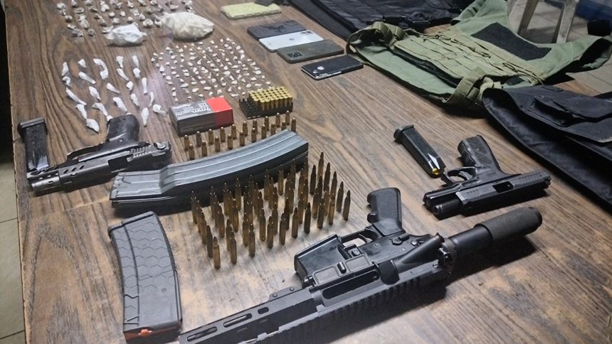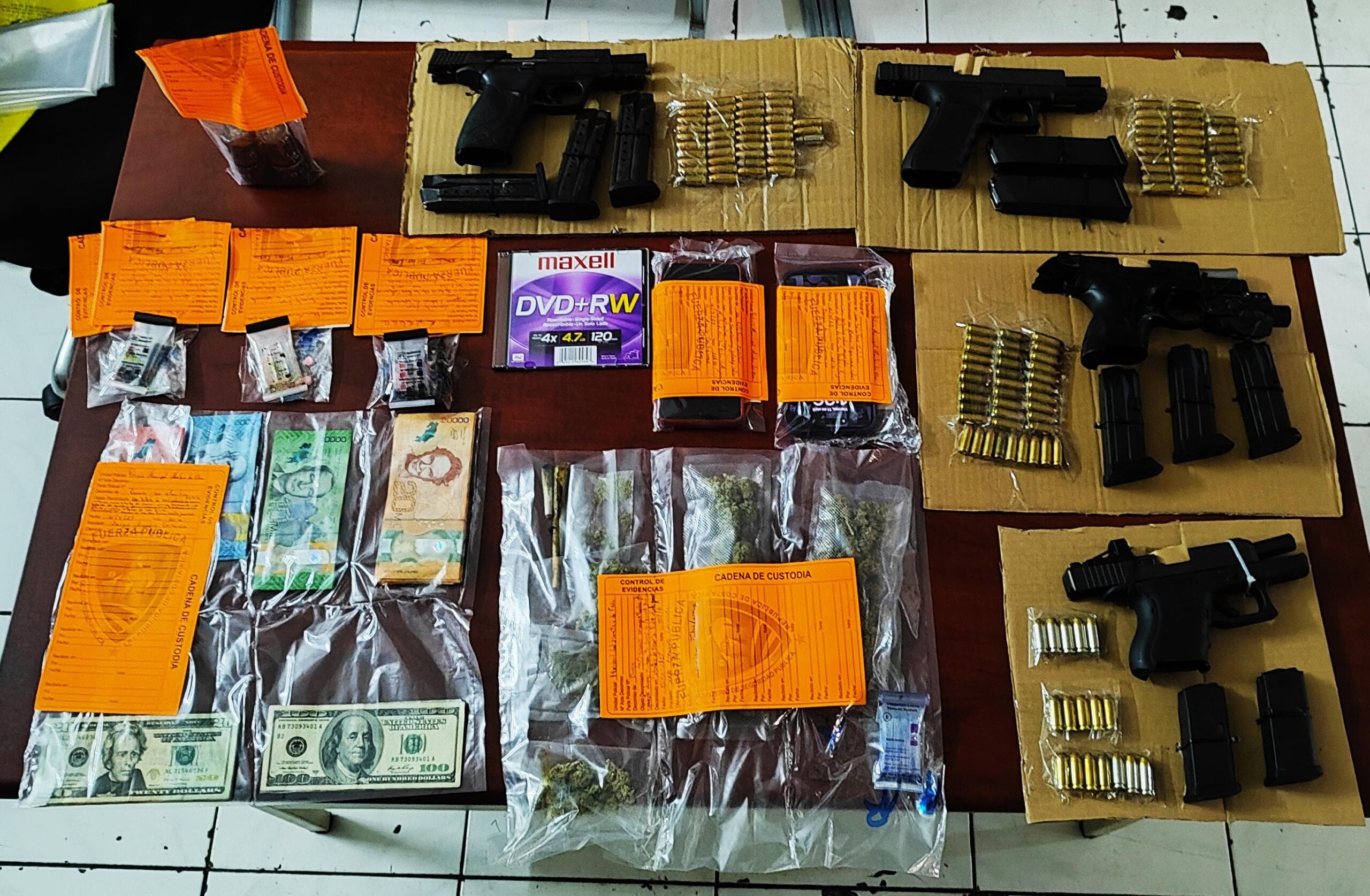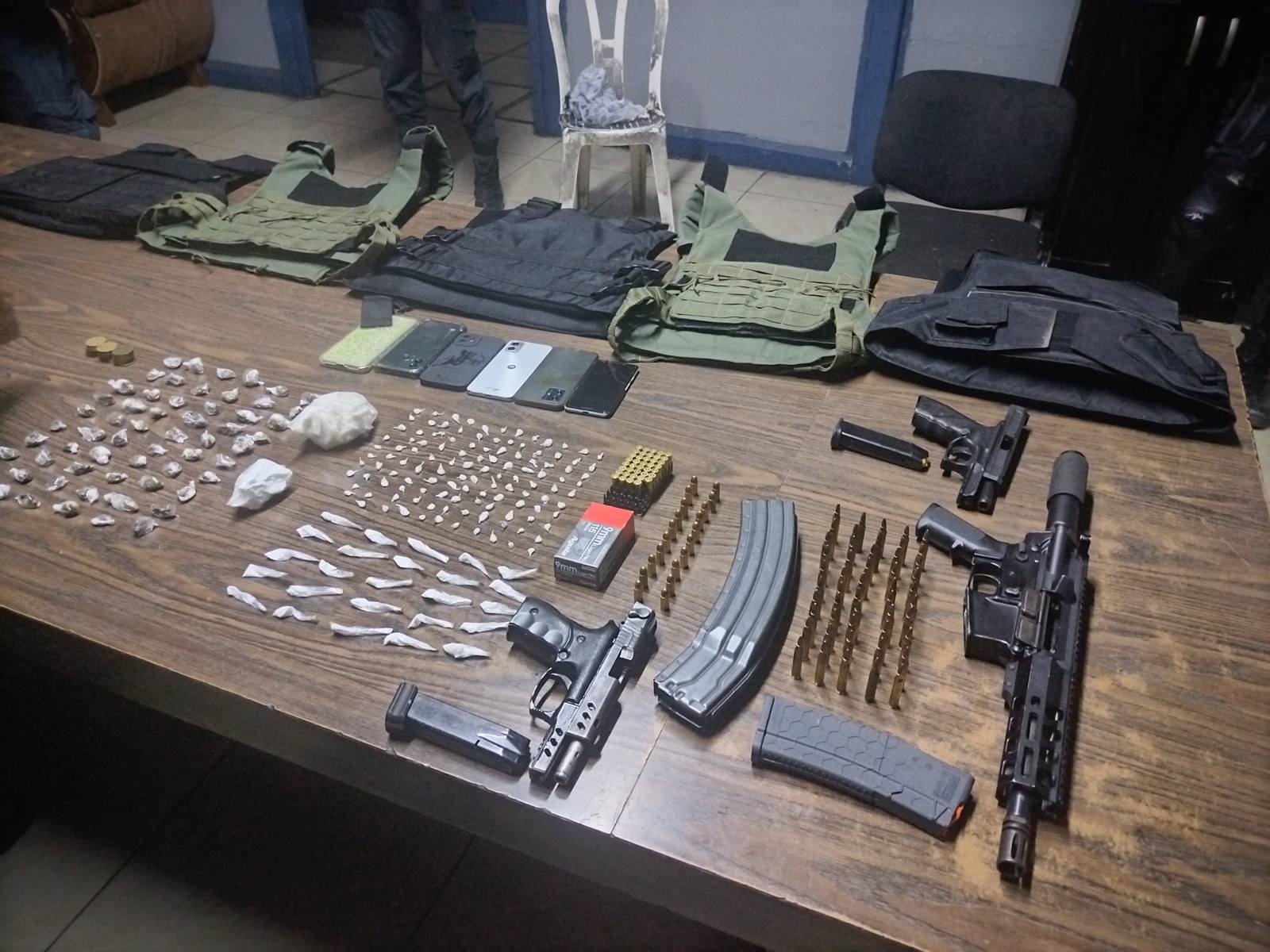 - Decomiso: Se incautó un arma AR 15, dos pistolas, chalecos balísticos, teléfonos celulares y drogas.