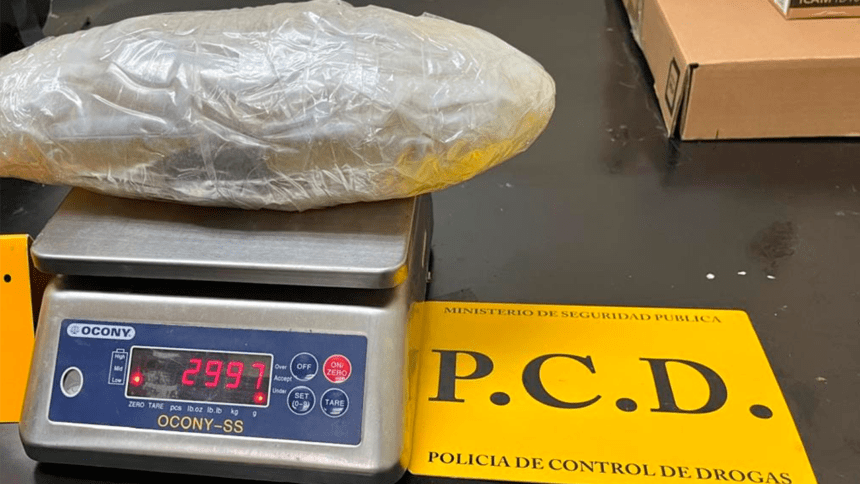 Durante la inspección, los oficiales descubrieron varios envoltorios de látex que contenían un líquido desconocido. Se coordinó con agentes de la Policía de Control de Drogas (PCD), quienes realizaron pruebas de campo que confirmaron que el líquido era cocaína, con un peso aproximado de 2.997 gramos.