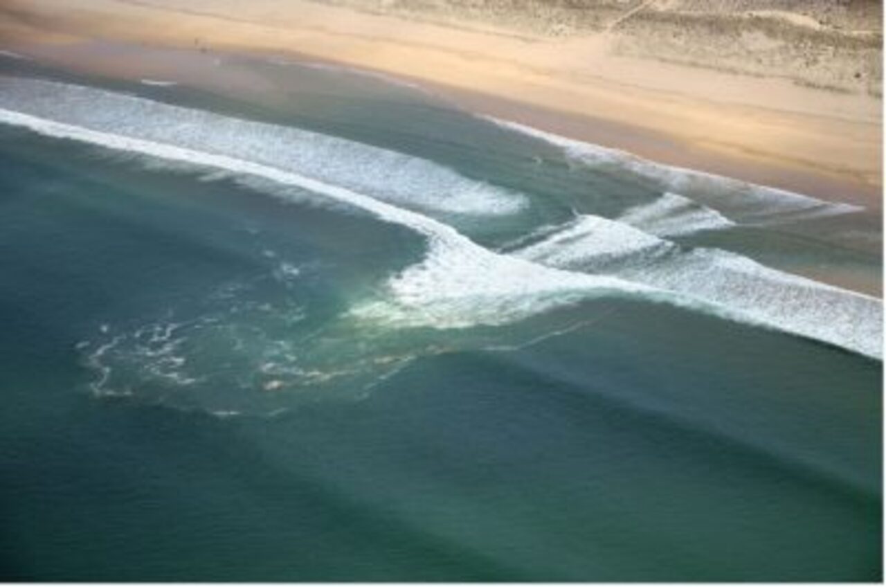 - Cambio de coloración: Las corrientes de resaca trasladan sedimento de arena, creando un camino arenoso o café que se dirige hacia el mar.