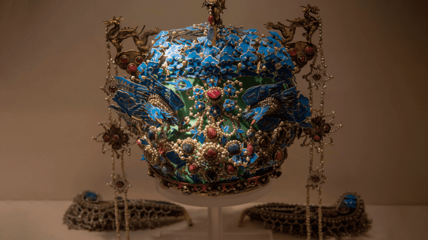 这款磁铁的设计原型,来自中国国家级珍宝——明代孝端皇后所佩戴的「九龙九凤冠」。这顶凤冠出土于万历皇帝陵墓,以精致华丽、工艺繁复著称,是中国古代皇室饰品的代表之一。凤冠真品因文物价值极高,被列为禁止出境展出的国宝。