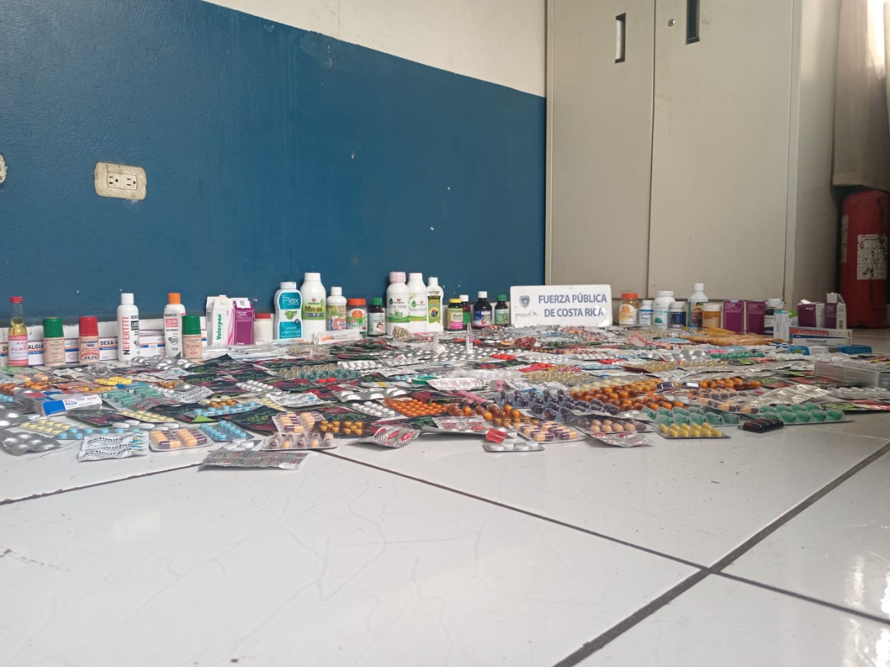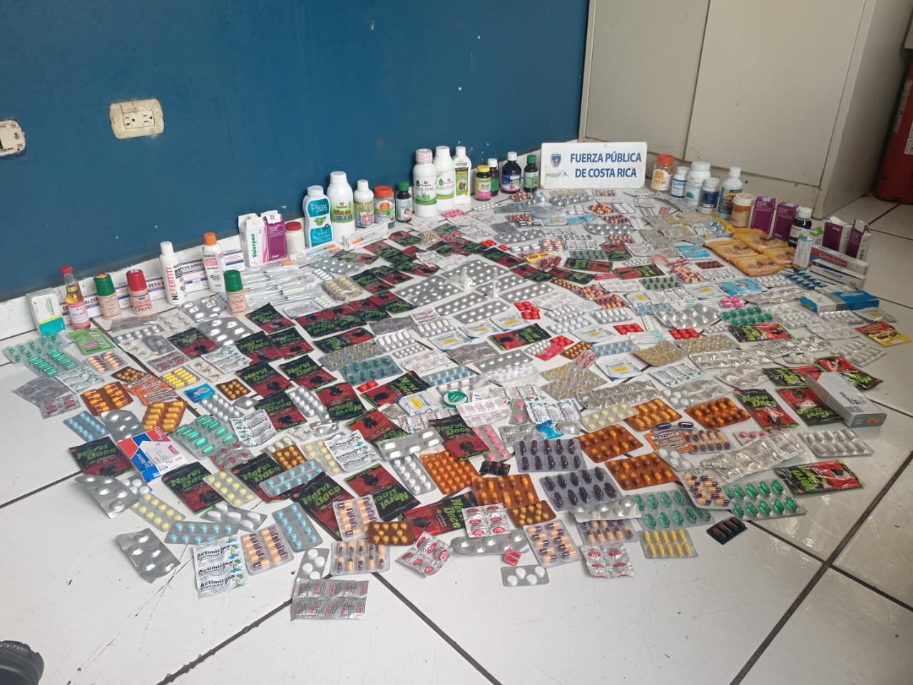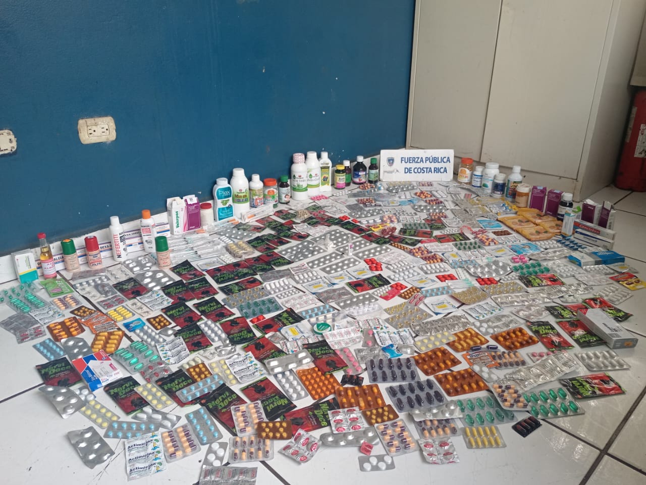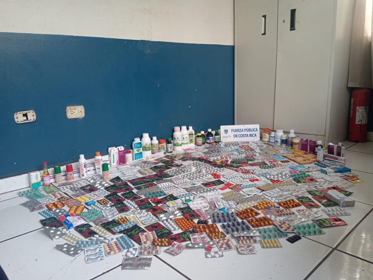 Lourdes de Abangares, Guanacaste – La Fuerza Pública decomisó más de dos mil unidades de medicamentos que se presume ingresaron de forma irregular desde Nicaragua y sin control sanitario, durante un control de carreteras realizado la madrugada del sábado en Lourdes de Abangares.