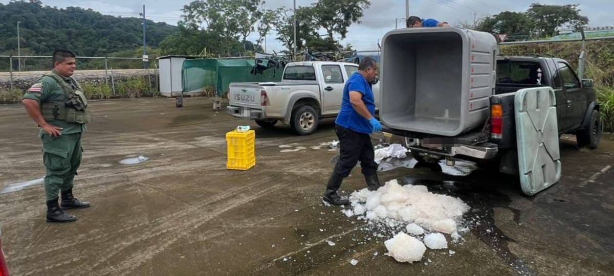 Tras el decomiso, la Policía de Fronteras coordinó con funcionarios del Servicio Nacional de Salud Animal (SENASA) y de INCOPESCA, quienes acudieron al lugar para realizar la inspección sanitaria correspondiente. Ambos organismos confirmaron las irregularidades detectadas, por lo que, con la autorización de la Fiscalía, se procedió a la destrucción del cargamento, al no contar con las condiciones necesarias para su comercialización o consumo.