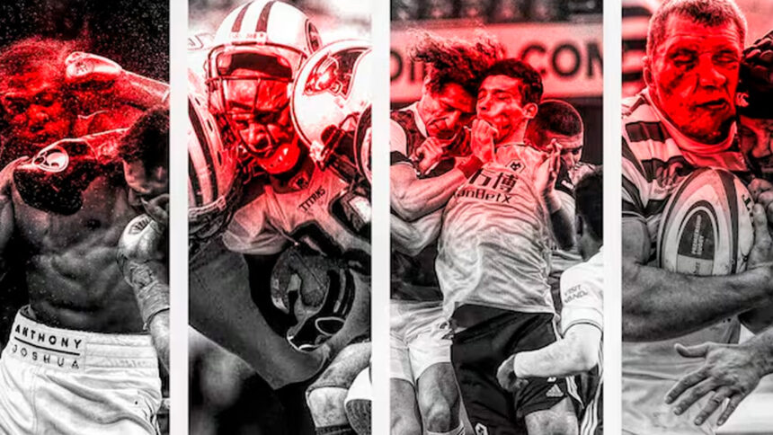 橄榄球、美式足球、冰球和拳击都共享一个关键风险因素:高强度的身体接触可能导致严重的身体伤害,包括脑部损伤。其中最危险的后果之一是脑震荡,由于头部受到剧烈撞击,导致大脑撞击到颅骨的壁上,根据冲击力的严重程度,可能会多次重复。