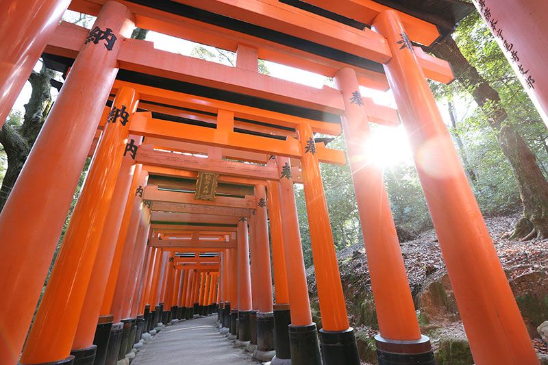 Lo primero que impacta son los miles de torii rojos que forman túneles interminables. Ese paisaje fotogénico, conocido como los mil torii, es un icono instantáneo de Japón. Los colores y la repetición crean una atmósfera casi hipnótica, perfecta para fotos, pero también para caminar en calma. Esa conjunción entre lo visual y lo físico es una de las razones por las que Fushimi Inari se volvió tan popular entre turistas que buscan algo auténtico pero fácil de disfrutar.