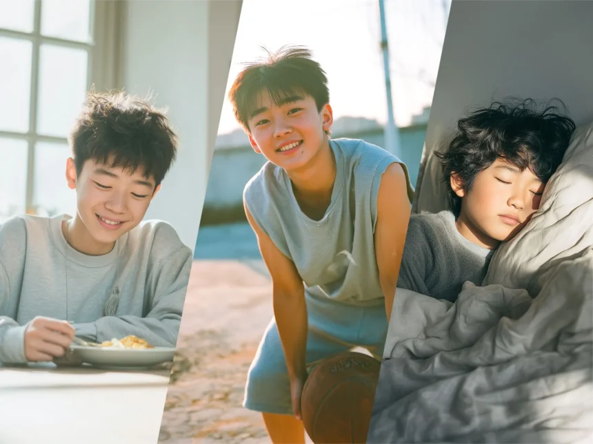 中醫師陳敬智提醒,青春期孩子除了選擇符合男女不同需求的芳茲轉大人滴雞精,平時可結合「吃、動、睡」原則。飲食需均衡攝取蛋白質、鈣質、鐵與鋅,避免過量甜食、炸物與含糖飲料;運動建議籃球、跳繩、跑步等能刺激身體發展的項目;至於睡眠建議睡足8小時,培養規律作息讓成長效果加倍。