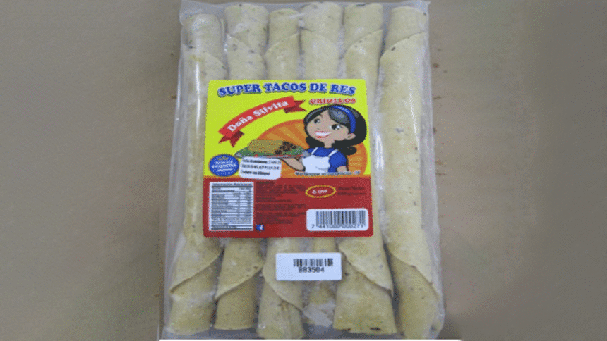 El Ministerio de Salud ha compartido una imagen del producto contaminado para facilitar su identificación por parte de los consumidores: Super Tacos de Res Criollos, marca Doña Silvita, lote 164-25-R, registro sanitario A-CR-22-03250, vencimiento 13/06/2026.
