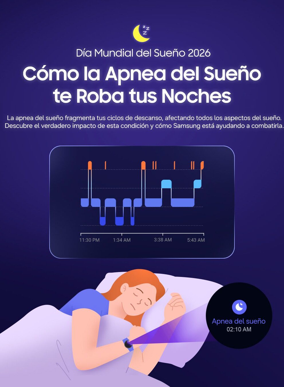 Millones de personas en todo el mundo sufren de apnea del sueño, pero lo más alarmante es que el 80% de los afectados desconoce su condición. Esta grave afección interrumpe la respiración durante la noche, elevando el riesgo de hipertensión y accidentes cerebrovasculares. En el marco del Día Mundial del Sueño, Samsung ha revelado datos que posicionan a su serie Galaxy Watch como una herramienta clave para el diagnóstico temprano. Para más noticias de bienestar, visite Nacional en STAY TV.