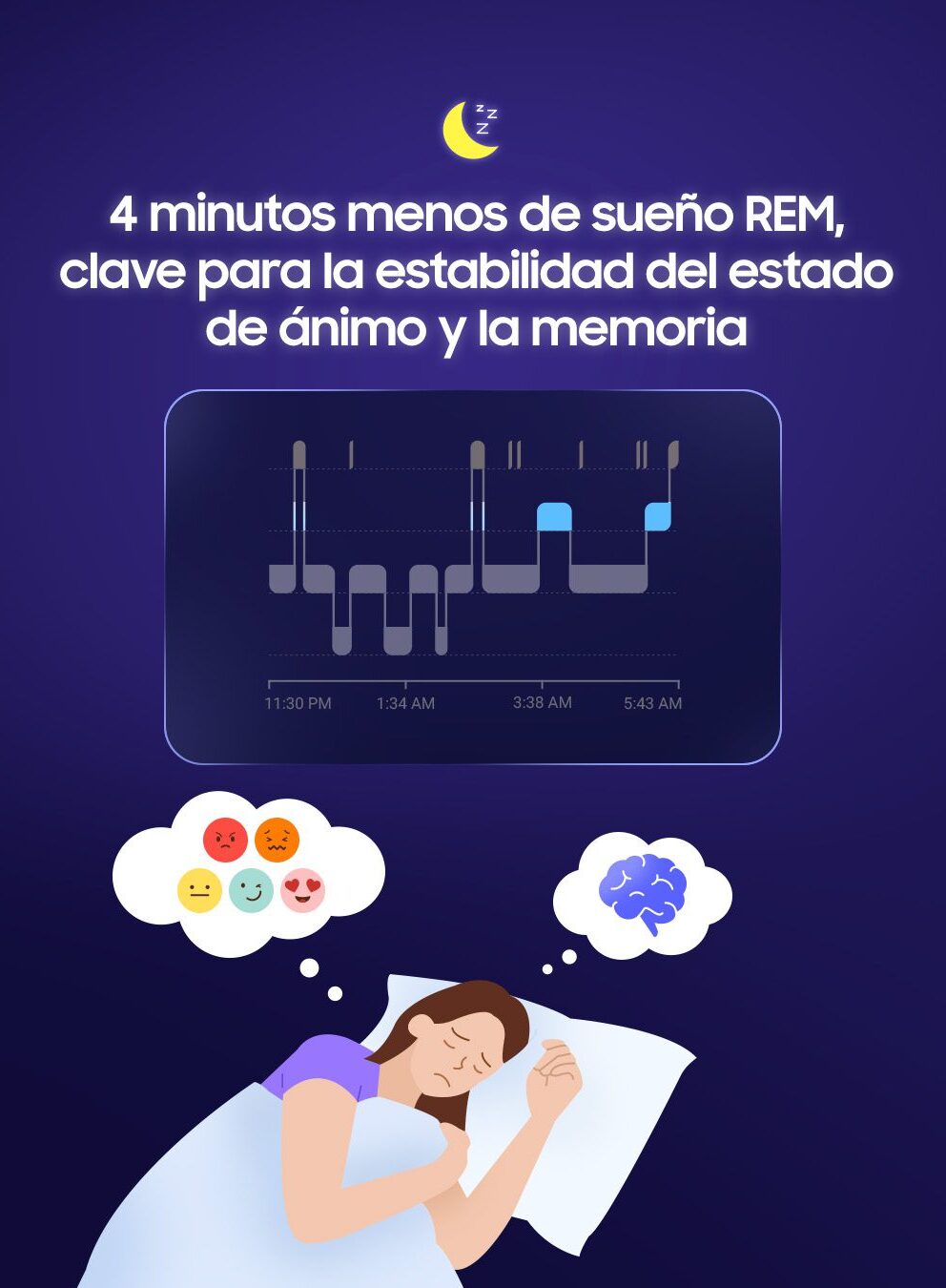 • 4 minutos menos de sueño REM: Afectando el procesamiento de emociones y la memoria.