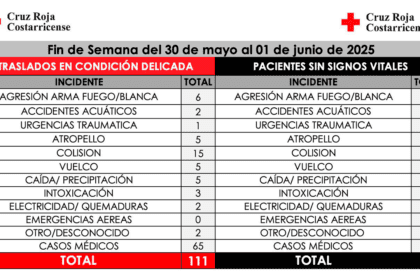 Cruz Roja Costarricense Atendió 111 Pacientes en Condición Crítica Este Fin de Semana
